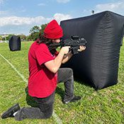 Switch over to 7 of our larger walls to increase your coverage for open areas or older (taller) players. This event switches out to the larger black walls which provide a better height and more coverage. This is the perfect option if you have a larger number of players than the standard 10, older players, or a open area to play in. (Ages 8+)